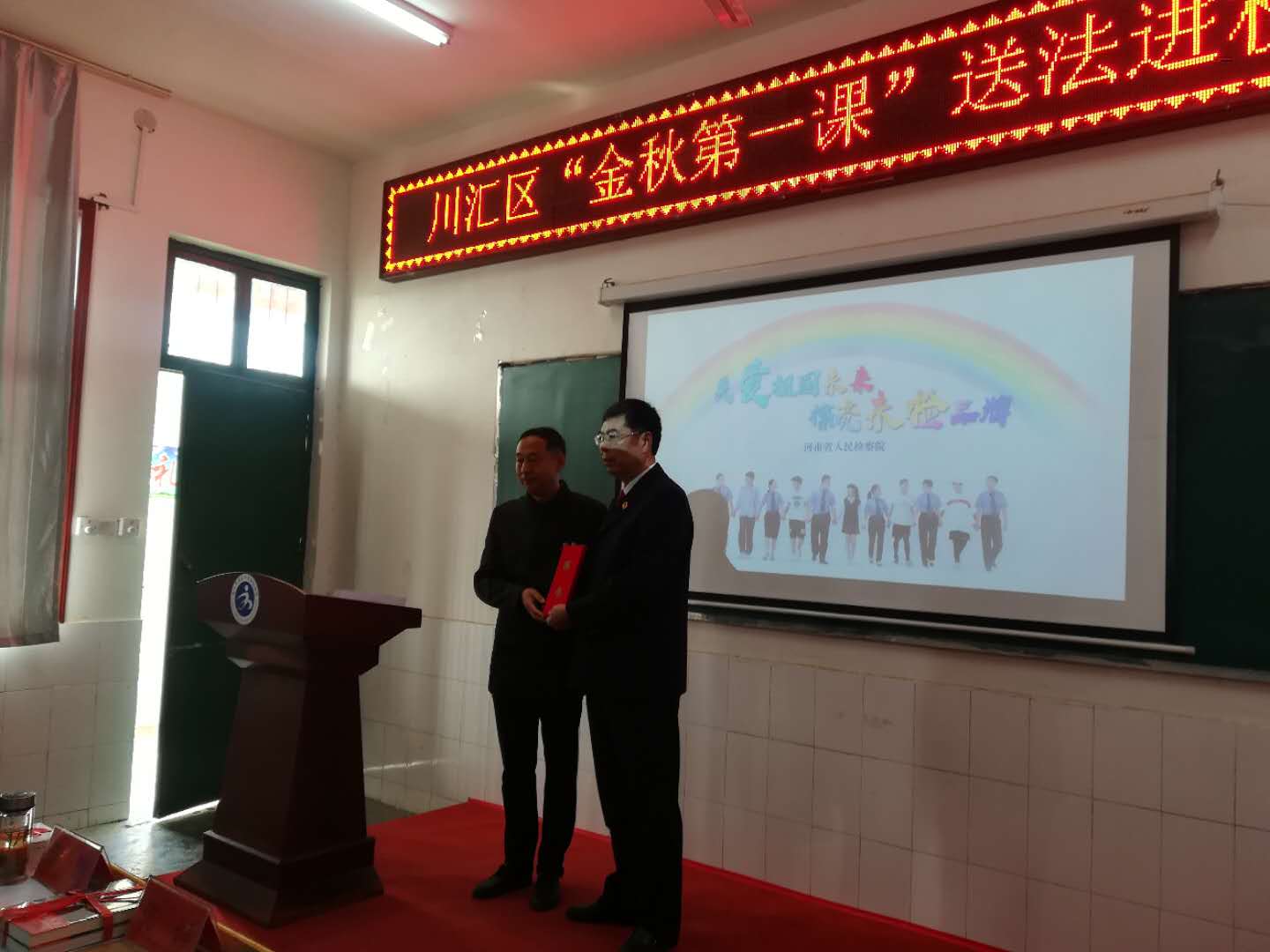 10月16日上午,由川匯區(qū)人民檢察院、川匯區(qū)教體局、共青團川匯區(qū)委、川匯區(qū)婦聯(lián)共同舉辦的“金秋第一課”送法進(jìn)校園活動在周口市第23中舉行。