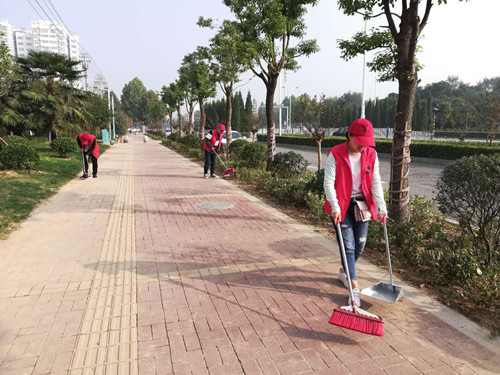 為扎實(shí)推進(jìn)“五城聯(lián)創(chuàng)”工作深入開展,調(diào)動(dòng)廣大市民積極參與“五城聯(lián)創(chuàng)”工作的積極性、主動(dòng)性,我市在中心城區(qū)開展了為期一個(gè)月的“灑掃庭院迎賓客,文明創(chuàng)建我助力”活動(dòng)。圖①為中國(guó)人民銀行職工在清理小廣告。圖②為中國(guó)人壽職工在清掃路面。圖③為市公路局職工在清理綠化帶。圖④為周口師范學(xué)院師生在整理共享單車。