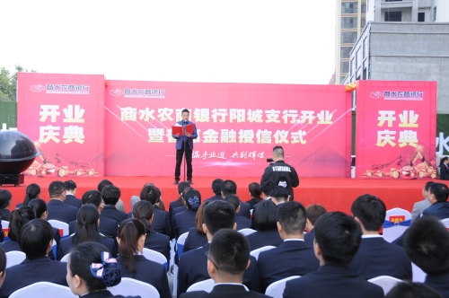 10月24日,商水農(nóng)商銀行舉行陽城支行開業(yè)暨 普惠金融授信儀式。該行行長李楠及中層以上人員參加儀式。縣金融辦負責(zé)人姜建中 、縣人民銀行行長徐明、銀監(jiān)辦主任張明瑭,部分客戶代表應(yīng)邀出席儀式,儀式由姜建中主持。
