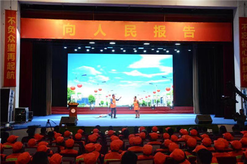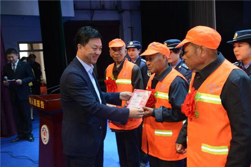 在當天的會議上,全體與會人員首先集中觀看了短片《向人民報告》,詳細全面地總結回顧了“代人民管理城市”理念實施一年來的工作,對上年度民意調(diào)查結果和城市管理成果向人民進行報告,對今年度的民意調(diào)查進行分析研判,對下一步城市管理工作進行了安排部署,并對城市管理先進單位、環(huán)衛(wèi)工作先進單位、優(yōu)秀環(huán)衛(wèi)工人、城市管理工作先進個人進行表彰。