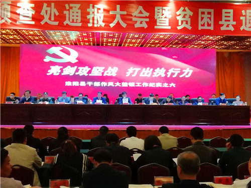 10月31日上午,淮陽縣干部作風(fēng)大整頓查處通報大會暨貧困退出縣級自評動員會在羲皇賓館東三樓會議廳召開。縣委書記馬明超出席會議并講話,縣長王毅主持會議,縣委副書記、政法委書記岳新坦宣讀《脫貧攻堅督查通報》,縣委常委、縣紀(jì)委書記、縣監(jiān)委主任王之夢宣讀《通報》,被通報單位負責(zé)人作表態(tài)發(fā)言。