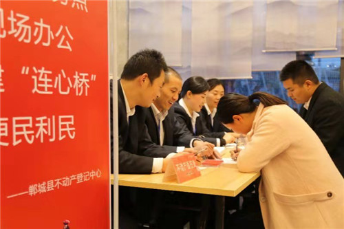 11月10日至13日,鄲城縣不動產(chǎn)登記中心緊緊圍繞“服務(wù)群眾、服務(wù)民生”,用釘釘子的精神,苦練繡花功夫,創(chuàng)新服務(wù)方式,主動貼近服務(wù),擦亮“小窗口”,進(jìn)駐剛開盤的樓盤,積極搭建起便民利民“連心橋”,真正做到讓信息多跑路、讓群眾少跑路,實現(xiàn)了“流程順暢、高效便捷、群眾滿意”的業(yè)務(wù)辦理,受到了辦事群眾和企業(yè)的高度稱贊。