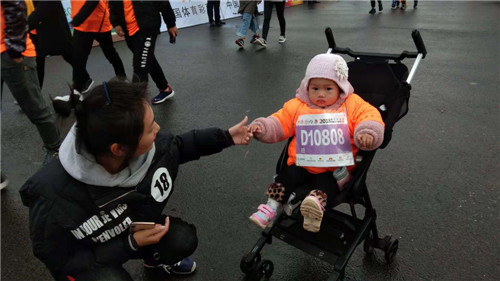 “重在參與,讓寶寶也感受一下馬拉松的比賽的氣氛,目的還是帶孩子活動活動,從小養(yǎng)成一個運動的好習(xí)慣。”姚易晨的媽媽這樣介紹。