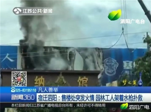 9月5日上午10時(shí)許,江蘇省泗陽縣北京東路塞納公館營銷中心因招牌頂部電焊火星濺落,致使門頭起火。起火點(diǎn)距離地面約5米,滅火器等常用滅火設(shè)備無法起作用。為防止意外,售樓處工作人員及時(shí)疏散群眾,同時(shí)撥打119救火電話。就在此時(shí),身為泗陽縣園林綠化管理處的技術(shù)員曹書志,正開著灑水車進(jìn)行綠化帶澆水作業(yè),見到路邊濃煙滾滾,火勢兇猛,曹書志二話不說,立刻把灑水車開到著火點(diǎn),不顧生命危險(xiǎn)下車,和其他3名工人,迅速打開前噴水頭和后部水炮供水的副發(fā)動機(jī)進(jìn)行滅火,在持續(xù)噴射十余分鐘后成功將火撲滅。