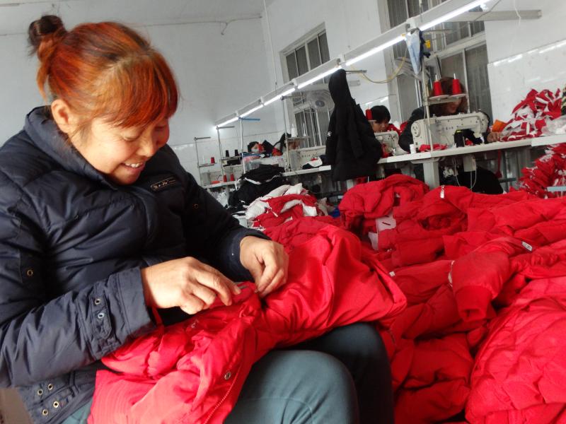 近年來(lái),沈丘縣在打響脫貧攻堅(jiān)戰(zhàn)和鞏固提升脫貧攻堅(jiān)成果工作中,大力發(fā)展家庭手工業(yè),帶動(dòng)全縣5000余名留守婦女家門(mén)口就業(yè),年人均增收2萬(wàn)元。左圖為11月19日,周營(yíng)鎮(zhèn)馬營(yíng)村留守婦女高英在一個(gè)兒童服裝加工點(diǎn)忙著剪線頭。②5 謝辛凌 攝