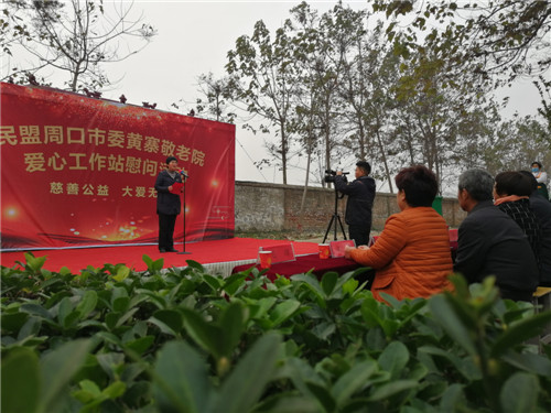 閆冬梅在慰問演出致辭中說,民盟周口市委領(lǐng)導(dǎo)親臨黃寨開展慰問活動(dòng),既體現(xiàn)了民盟周口市委對(duì)商水縣工作的大力支持,又展現(xiàn)了民盟會(huì)員主動(dòng)承擔(dān)社會(huì)責(zé)任、熱愛社會(huì)公益的良好形象,為商水縣全面打好打贏脫貧攻堅(jiān)戰(zhàn)提供了有力支撐?!胺瞰I(xiàn)愛 心、關(guān)愛老人是周口民盟義不容辭的責(zé)任和義務(wù),讓老年人能夠老有所養(yǎng)、老有所樂一直是民盟周口市委幫扶的重要內(nèi)容,今后民盟周口市委將繼續(xù)發(fā)揚(yáng)優(yōu)良傳統(tǒng),一如既往地支持黃寨敬老院工作,讓老年人的生活水平不斷提高。
