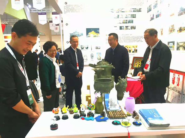 市博物館展位圖板展示了周口市博物館的基本情況,常設(shè)展覽《宛丘之上一一周口歷史文物陳列》,裴李崗文化石磨盤、戰(zhàn)國錯金越王劍等鎮(zhèn)館之寶,社會教育情況,淮陽太昊陵、鹿邑太清宮等周口市主要文物景點(diǎn),以及文創(chuàng)產(chǎn)品華威民俗博物苑漢畫拓片、周口解氏仿古青銅器、周口關(guān)帝廟木版年畫、淮陽泥泥狗等,開幕當(dāng)天深受廣大觀眾好評。