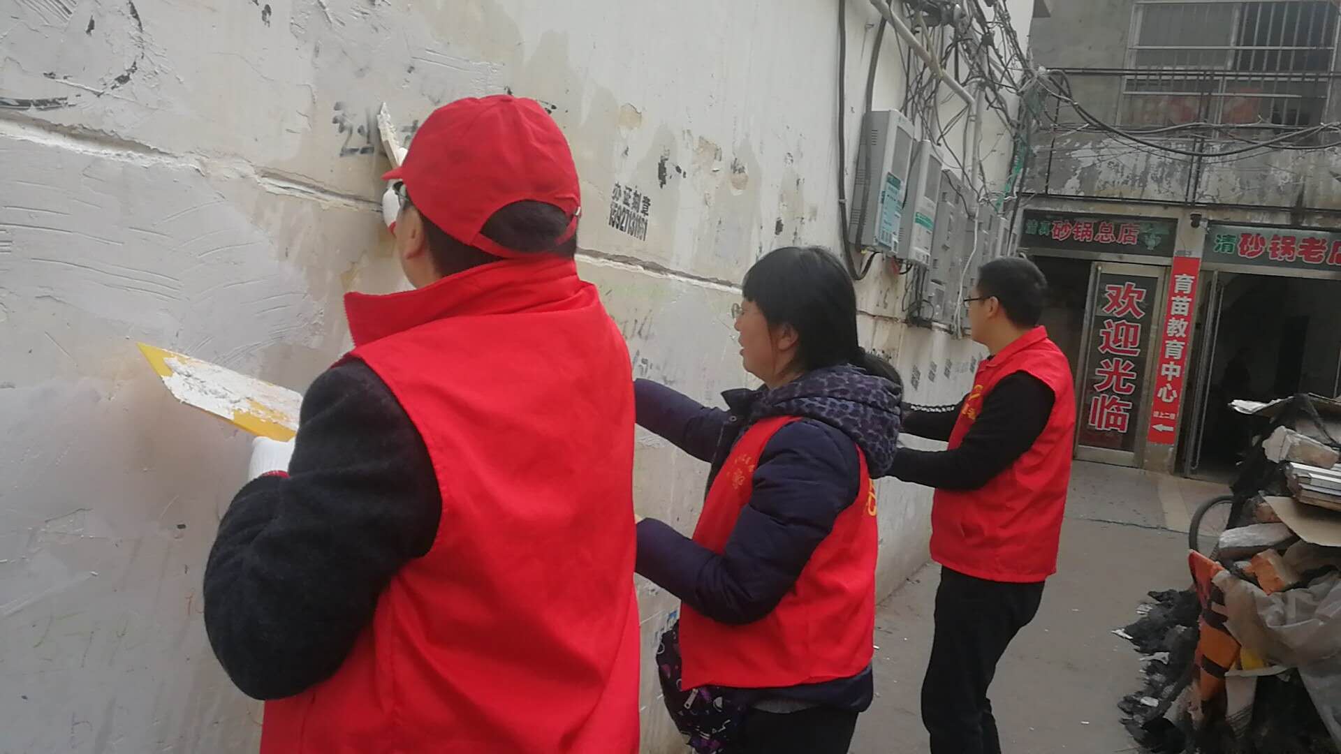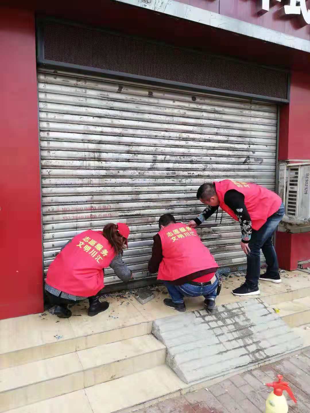 作為城市管理和市容環(huán)境整治的“主戰(zhàn)場(chǎng)”,川匯區(qū)自11月起設(shè)立“市容工作日”,進(jìn)一步深化“五城聯(lián)創(chuàng)”工作,切實(shí)改善中心城區(qū)面貌。11月27日,“市容工作日”活動(dòng)正式啟動(dòng),川匯區(qū)各單位紛紛組織志愿者走上街頭,在各自轄區(qū)開展小廣告清理等環(huán)境綜合整治工作。圖一為志愿者粉刷布滿小廣告的建筑物外墻。圖二為志愿者清理地面上的小廣告。圖三為志愿者清理卷閘門上的小廣告。