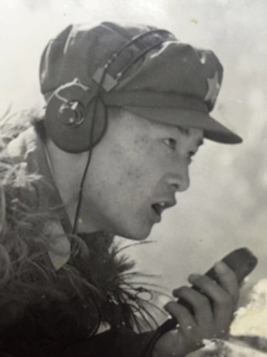 這時候,反撲的敵人越來越近了,蔣慶泉向指揮部的兩名話務(wù)戰(zhàn)士谷德泰和陸洪坤報告了這一情況??粗绯彼惚平臄橙?,蔣慶泉拼盡全力,沖著步話機(jī)嘶吼:“別廢話!向我所在的碉堡頂開炮!”。在陣地暗堡中,幸存的戰(zhàn)士緊緊圍在蔣慶泉身邊,以保護(hù)他向我炮兵指揮部通報目標(biāo)的位置。
