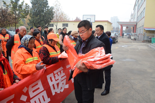 近日寒流來(lái)襲,氣溫驟降,連續(xù)的低溫降雨天氣讓人感受到了冬天的寒冷,為了確??h城區(qū)環(huán)境衛(wèi)生干凈整潔,廣大環(huán)衛(wèi)工人們始終堅(jiān)持冒嚴(yán)寒每天起早貪黑打掃城區(qū)衛(wèi)生,默默無(wú)聞堅(jiān)守在工作一線。12月3日,西華縣媧城商會(huì)會(huì)長(zhǎng)黃鳳芝攜手愛(ài)心企業(yè)山西汾酒集團(tuán)代理商宋二領(lǐng)來(lái)到城管局向環(huán)衛(wèi)工人捐贈(zèng)一批環(huán)衛(wèi)保潔防寒服,在寒冷冬天為堅(jiān)守縣城區(qū)保潔一線的每位環(huán)衛(wèi)工人送去溫暖。