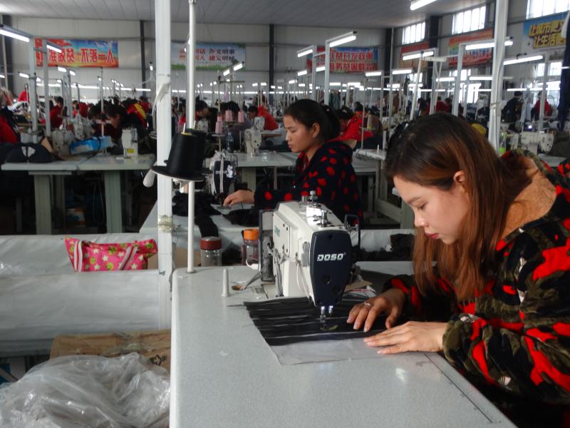 近年來,沈丘縣針對不能外出就業(yè)但有勞動(dòng)能力和就業(yè)意愿的貧困群眾,采取“企業(yè)+扶貧車間+貧困戶”模式,引導(dǎo)縣域產(chǎn)業(yè)集聚區(qū)內(nèi)的服裝加工、電子組裝、戶外用品等勞動(dòng)密集型企業(yè)延伸產(chǎn)業(yè)鏈條,在貧困村規(guī)劃建設(shè)扶貧車間200余家,吸納貧困群眾就近就地就業(yè)。圖為12月3日,該縣付井鎮(zhèn)佳依服裝廠的工人正在忙著加工訂單服裝。②5 謝辛凌 攝
