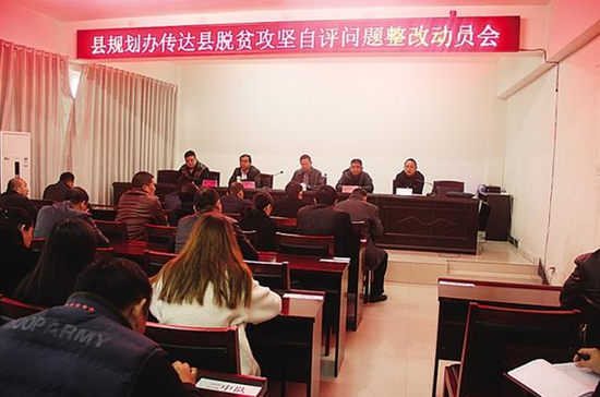縣規(guī)劃辦傳達縣脫貧攻堅自評問題整改動員會。 (記者 付永奇 通訊員 莊正富 攝)