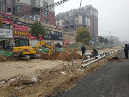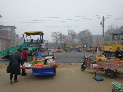 記者今日走訪漢陽(yáng)路中段(穎河路-建設(shè)路)看到,目前該路段機(jī)動(dòng)車道已鋪上黑色的混凝土物質(zhì),人行道則是壓實(shí)過(guò)的土路。壓路機(jī)等設(shè)備??吭诘缆穬深^,并未啟動(dòng),有兩臺(tái)挖掘機(jī)及數(shù)十名工人在人行道上,鋪設(shè)下水道。施工路段內(nèi),有不少菜販在沿街叫賣。
