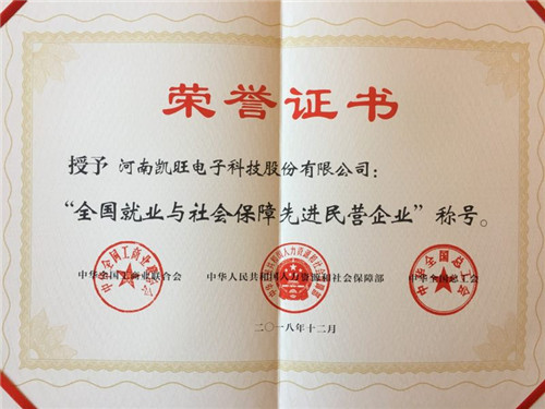 12月20日上午,記者獲悉在全國召開的就業(yè)與社會(huì)保障先進(jìn)民營企業(yè)暨關(guān)愛員工實(shí)現(xiàn)雙贏表彰大會(huì)上,我市民營企業(yè)河南凱旺電子科技股份有限公司榮獲“全國就業(yè)與社會(huì)保障先進(jìn)民營企業(yè)”稱號,中華全國工商業(yè)聯(lián)合會(huì)、中華人民共和國人力資源和社會(huì)保障部、中華全國總工會(huì)為該企業(yè)頒發(fā)了榮譽(yù)證書。
