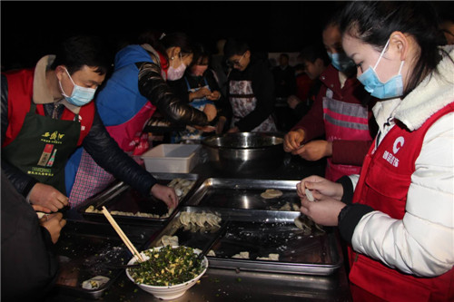 12月22日冬至,是中華民族傳統(tǒng)的重要節(jié)日,每年的今天,太康縣“愛心粥屋”都會舉辦志愿者包餃子獻(xiàn)愛心活動。早上5時(shí),雖然天氣嚴(yán)寒,人們大都在夢境中,但“愛心粥屋”的小院里卻燈火通明、人頭攢動,百余名志愿者如約而至,愛心企業(yè)“河南碧海食品”提供的餃子所用食材已擺放到位,來自縣統(tǒng)戰(zhàn)部、縣質(zhì)監(jiān)局、縣物流商會和社會各界志愿者穿上圍裙、帶上口罩、排成三排,他們分工明確,有的和面、有的搟皮、有的包餃子,整個(gè)小院歡聲笑語、氣氛融合,場面十分熱鬧喜慶,由于志愿者相互配合默契,包餃子速度也非常的快,在短短的一個(gè)小時(shí)時(shí)間,夠380多名環(huán)衛(wèi)工人食用的2萬余枚餃子都已包制完成。