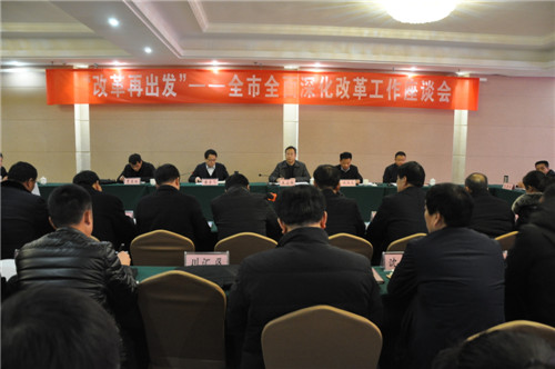 1月9日,“改革再出發(fā)”— 全市全面深化改革工作座談會在商水召開。會議對40年全市改革開放取得的顯著成績和變化進(jìn)行暢談式總結(jié)回顧,對今后一個(gè)時(shí)期深化改革工作進(jìn)行相互啟發(fā)式思考謀劃。