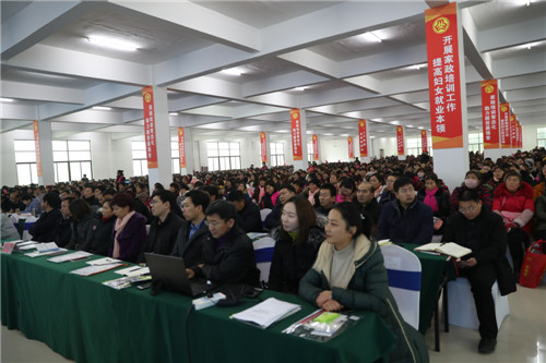 一人干家政,全家能脫貧。1月12日,太康縣家政培訓再出發(fā)動員大會在縣產(chǎn)業(yè)集聚區(qū)磊磊集團召開。中國扶貧雜志社常務副社長姚樸成、省商務廳貿(mào)易處長王蘇、調研員孫琪,省婦聯(lián)發(fā)展部部長張俊美、副部長張亞明,周口市商務局局長盧明,周口市婦聯(lián)調研員陳松濤,李錫勇、王程清、謝成營、馬俊美、張國慶、喬偉等太康縣領導出席啟動儀式。會議由太康縣委副書記、政法委書記王程清主持。