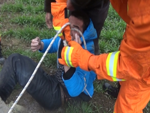“氣溫很低,而且男子已經(jīng)在井下水里泡了一夜,好在他的意識(shí)還比較清醒?!毕乐嘘?duì)長(zhǎng)李輝說(shuō),經(jīng)過(guò)交談,他們采取下繩套的辦法,讓男子自行把手腕伸進(jìn)繩套內(nèi),然后大家齊心協(xié)力把他拉了上來(lái)。