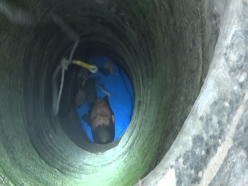 1月14日早上8時(shí)許,接到群眾報(bào)警后,淮陽(yáng)縣消防大隊(duì)立即出動(dòng)一輛搶險(xiǎn)救援車、一輛水罐車及8名指戰(zhàn)員趕赴救援。到達(dá)現(xiàn)場(chǎng)后,民警發(fā)現(xiàn)男子掉進(jìn)一個(gè)沒(méi)有蓋的澆灌井內(nèi),井深約10米,井口直徑大約20公分。