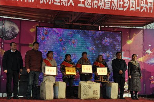 當(dāng)日,來自縣中醫(yī)院、縣衛(wèi)校附屬醫(yī)院的醫(yī)生在現(xiàn)場開展義診活動,縣文聯(lián)開展了春聯(lián)義寫活動,縣科協(xié)、移動公司等單位開展了科技文化宣傳活動。會議對湯莊鄉(xiāng)西口村評選出的“脫貧光榮戶、好婆婆、好媳婦、好鄉(xiāng)賢”等進(jìn)行表彰,縣委宣傳部副部長李全力、縣科協(xié)主席陳玲、湯莊鄉(xiāng)鄉(xiāng)長胡金旗等為獲獎(jiǎng)人員頒獎(jiǎng)。來自縣文化部門的文藝志愿者還為村民表演了精彩的文藝節(jié)目。