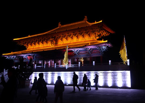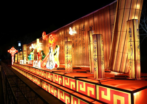 主題燈會(huì)老子布道、孔子問禮、武則天祭祖等造型與老子故里、人文鹿邑相得益彰,卡通肥豬為游客獻(xiàn)上一場憨厚的可愛形象,太極殿前日月潭內(nèi)青煙渺渺,在燈光的變化下讓人仿佛步入仙境,各個(gè)角落的樹木花草彩光熠熠,整個(gè)太清宮內(nèi)是光的海洋……