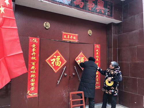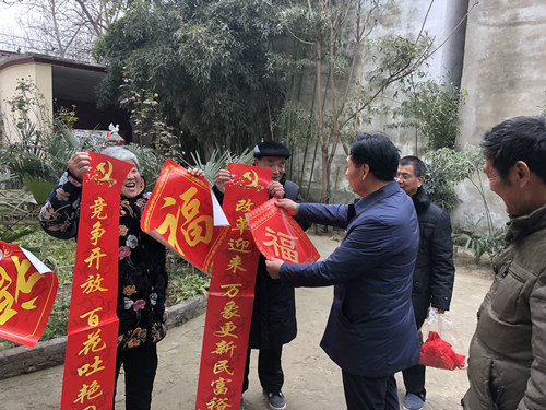 據(jù)了解,當(dāng)天下午時(shí)莊村黨支部訂制的3000多套春聯(lián),免費(fèi)贈(zèng)給448戶(hù)村民。記者看到,這些春聯(lián)的內(nèi)容都是承載著黨和政府的關(guān)懷,有的是歌頌改革開(kāi)放的,有的是幸福報(bào)黨恩的。該村村民朱在靈領(lǐng)到春聯(lián)后立刻把春聯(lián)拿回家,他將門(mén)頭擦干凈后把春聯(lián)貼了上去。在門(mén)口懸掛著的國(guó)旗的襯托下,顯得格外喜慶?!按謇锩赓M(fèi)發(fā)這種帶黨徽的春聯(lián)已經(jīng)第三年了,這種春聯(lián)傳遞了黨的好聲音,推動(dòng)了群眾對(duì)黨的擁護(hù),現(xiàn)在村民的精神面貌也貌煥然一新?!敝煸陟`高興地說(shuō)。
