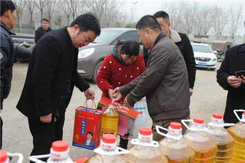 當(dāng)日下午3時(shí)許,記者在現(xiàn)場(chǎng)看到,慰問(wèn)現(xiàn)場(chǎng)很是熱鬧,胡偉一行先后為該村20戶(hù)困難群眾和老黨員送上了米、面、油、雞蛋、食用油、核桃露等慰問(wèn)品。慰問(wèn)過(guò)程中,胡偉詳細(xì)詢(xún)問(wèn)了困難群眾和老黨員的生活情況,并對(duì)他們配合與支持德和家園項(xiàng)目建設(shè)表示感謝。他表示,中鐵北京工程局集團(tuán)德和家園項(xiàng)目部一定會(huì)按照時(shí)間節(jié)點(diǎn)高標(biāo)準(zhǔn)、高質(zhì)量地完成德和家園安置房的建設(shè),讓曾樓村征遷群眾早日住上寬敞明亮的新房子。