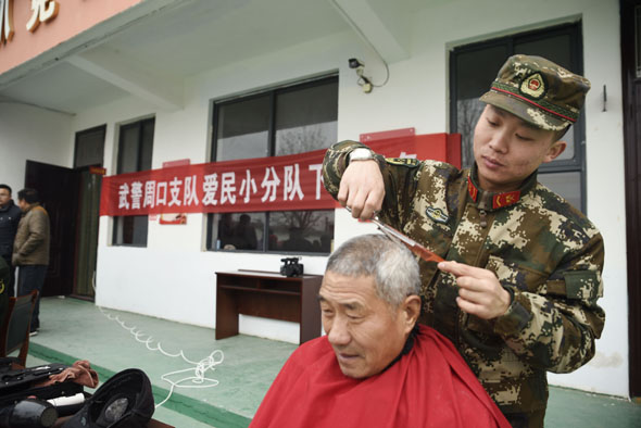 鄉(xiāng)村老年人們的身體狀況牽動著支隊領(lǐng)導(dǎo)的心,他們派出支隊醫(yī)務(wù)人員走進村落,在簡易的地方辦起巡診。藥盒上的細心標(biāo)記,手把手的診療,情真意切囑咐,都是官兵們真切的表達。支隊理發(fā)員帶著理發(fā)工具和一顆赤誠的心來到了村里,為老人們邊理發(fā)邊嘮家常,老人臉上樂開了花兒,笑著說“我家孫子和你大小差不多哩!”村里的孩子們也很喜歡這群穿著軍裝的叔叔們,不僅因為他們每次來都會送上精美學(xué)習(xí)用品,先進的多媒體設(shè)備,更因為他們身上軍人特有的責(zé)任與擔(dān)當(dāng)。