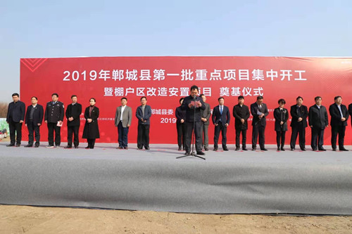 3月6日上午,鄲城縣舉行2019年全縣第一批重點(diǎn)項(xiàng)目集中開(kāi)工暨棚戶區(qū)改造安置項(xiàng)目開(kāi)工奠基儀式??h委書(shū)記羅文閣,河南中原建業(yè)城市發(fā)展有限公司董事長(zhǎng)陳建業(yè),總裁馬驍騰,縣長(zhǎng)李全林,縣人大常委會(huì)主任李建軍,縣政協(xié)主席姜永來(lái),縣委常委、常務(wù)副縣長(zhǎng)王智華等出席開(kāi)工儀式。