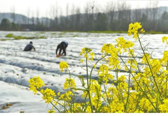 3月11日,農民正在蔬菜基地勞作。隨著天氣回暖,各地農民搶抓農時,在田間地頭伴著花香進行春耕生產。李建新 攝