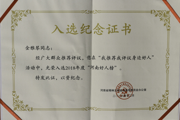 記者3月14日從西華縣委宣傳部獲悉,在日前揭曉的“出彩河南人 增輝新時(shí)代—2018年河南好人榜暨第三屆河南省鄉(xiāng)村好媳婦”名單中,來(lái)自西華縣實(shí)驗(yàn)小學(xué)教師金雅琴入選2018年度“河南好人榜”,榮獲孝老愛(ài)親類“河南好人”稱號(hào)。