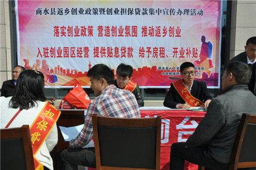 3月18日上午,商水縣人社局和縣郵儲(chǔ)銀行聯(lián)合在省級(jí)農(nóng)民工返鄉(xiāng)創(chuàng)業(yè)示范園區(qū)周口汽配城開(kāi)展創(chuàng)業(yè)補(bǔ)貼、創(chuàng)業(yè)擔(dān)保貸款優(yōu)惠政策宣傳。