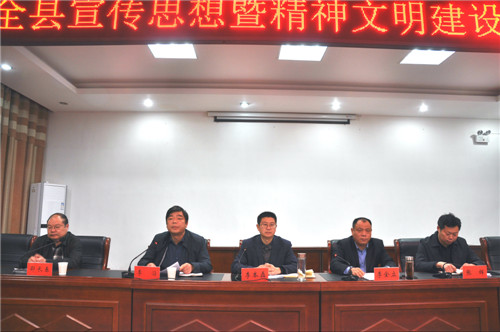 就如何做好今年的宣傳思想和精神文明建設(shè)工作,李本磊要求,要用好“學(xué)習(xí)強(qiáng)國(guó)”平臺(tái),強(qiáng)化理論武裝;要建好新時(shí)代文明實(shí)踐中心、鄉(xiāng)村志愿服務(wù)中心、縣級(jí)融媒體中心,筑牢基層陣地;要抓好“三城兩縣聯(lián)創(chuàng)”“六村共建”“三個(gè)起來(lái)”等三項(xiàng)活動(dòng),普惠人民群眾;要突出工作主線,聚焦主題宣傳;要堅(jiān)持團(tuán)結(jié)鼓勁,營(yíng)造輿論強(qiáng)勢(shì);要立足凝神聚氣,倡樹(shù)文明新風(fēng);要發(fā)揮比較優(yōu)勢(shì),打造文化強(qiáng)縣;要著力增強(qiáng)“四力”,建設(shè)一流隊(duì)伍。