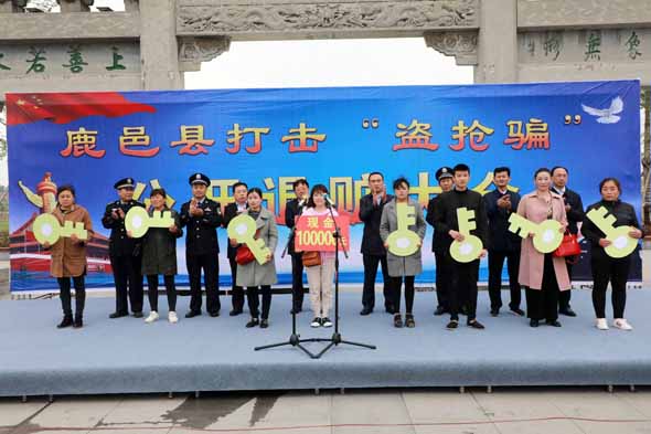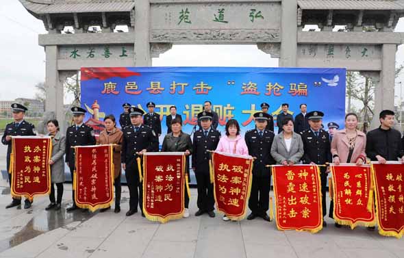 4月25日上午,鹿邑縣召開(kāi)打擊“盜搶騙”專(zhuān)項(xiàng)行動(dòng)公開(kāi)退贓大會(huì)??h委常委、政法委書(shū)記侯自峰出席會(huì)議并講話。縣公、檢、法、司等有關(guān)部門(mén)負(fù)責(zé)人與群眾代表近300人參加退贓大會(huì)。