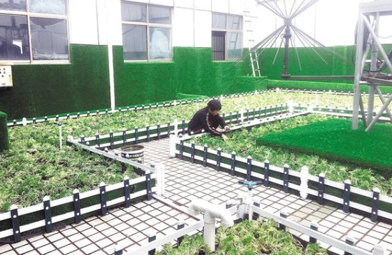 開發(fā)區(qū)積極推進(jìn)樓頂綠化工程,實現(xiàn)了防治大氣污染、美化環(huán)境、隔熱降溫的效果。圖為開發(fā)區(qū)綜合辦公大樓上鋪種的佛甲草。