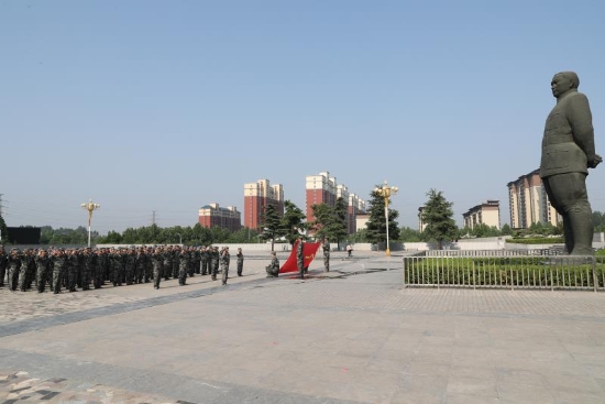 “我是中國民兵,我宣誓:服從中國共產(chǎn)黨領(lǐng)導,積極參加國家建設(shè),忠實履行國防義務(wù),遵紀守法,服從命令,忠于職守,努力學習……”當日上午,在吉鴻昌將軍塑像前,太康縣全體基干民兵集體重溫了民兵誓詞。