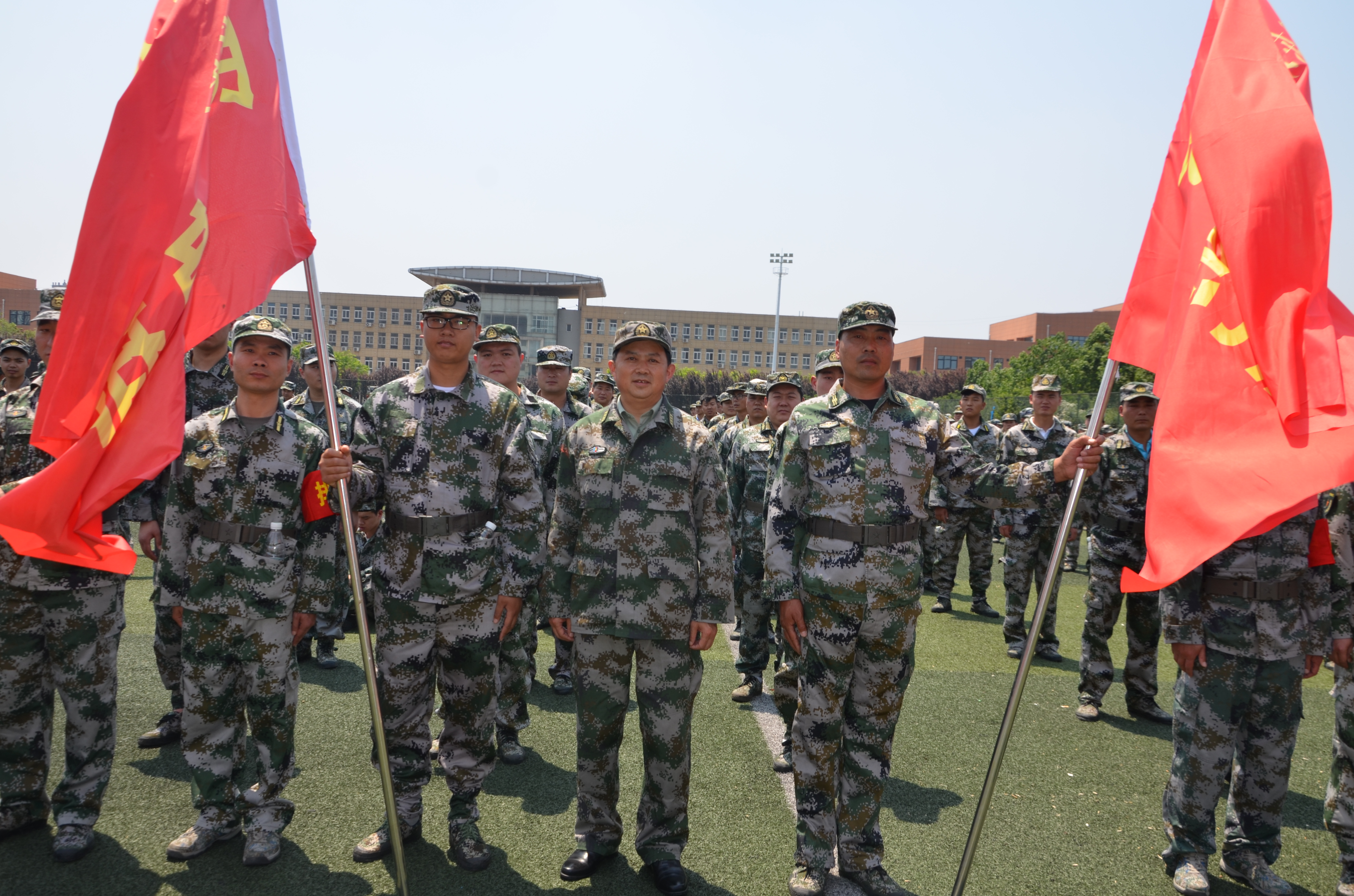 5月10日上午,沈丘縣體育場上紅旗招展、隊列整齊,民兵同志全副武裝、精神抖擻。綜合應急分隊、防汛抗洪分隊、應急防爆分隊、醫(yī)療救護分隊和22個鄉(xiāng)鎮(zhèn)民兵應急排近千名基干民兵參加了沈丘縣2019年基干民兵集中點驗暨開訓動員大會。