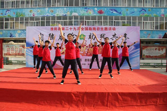 活動(dòng)儀式上,縣特殊教育學(xué)校學(xué)生和縣音樂家協(xié)會(huì)文藝志愿者分別為觀眾表演了精彩的文藝節(jié)目。縣特殊教育學(xué)校的學(xué)生首先表演了舞蹈《海草舞》,文藝志愿者周紅春演唱了歌曲《愛的奉獻(xiàn)》、《天南地北淮陽人》、李泉稼小朋友演唱了豫劇《洼洼地里好莊稼》,淮陽特殊教育學(xué)校學(xué)生表演了節(jié)目《感恩的心》。精彩的表演贏得了現(xiàn)場(chǎng)觀眾的陣陣掌聲。