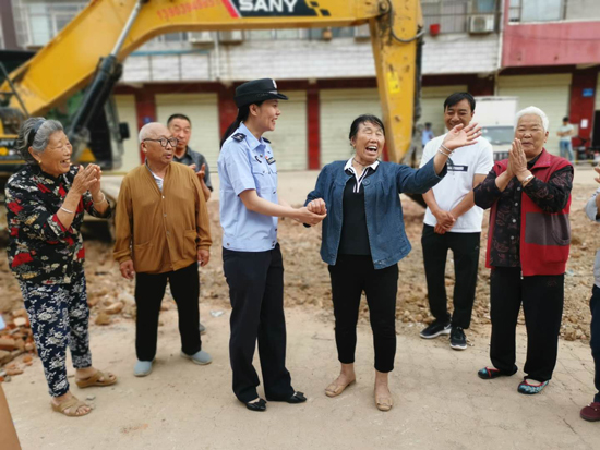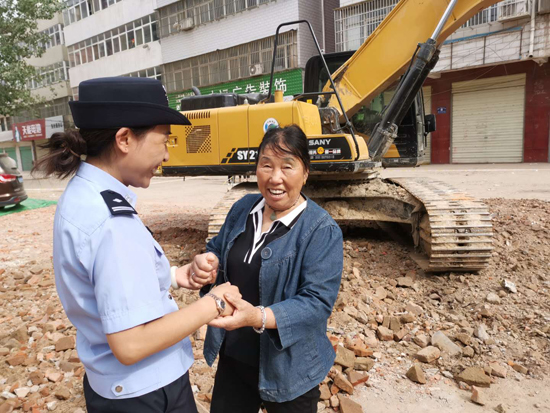 “創(chuàng)衛(wèi)不留死角,想盡辦法也要給市民良好的出行體驗?!笔泄簿终匍_黨委會議專題研究建新路西段附近居民出行問題,發(fā)出“克服困難、自掏腰包、推倒違建、平整道路”的指令,號召全警幫助居民實現(xiàn)安全出行?!斑@些民警、社區(qū)干部都跟我的孩子差不多大,看著他們頂著大太陽清理雜物,夜里還在加班加點工作,我給他們說‘孩子來家喝口水,吃個飯’他們都笑著拒絕了。真感謝他們,也心疼他們。”說起“創(chuàng)衛(wèi)”以來,市公安局民警和社區(qū)干部的工作,70多歲的智老太眼含熱淚。