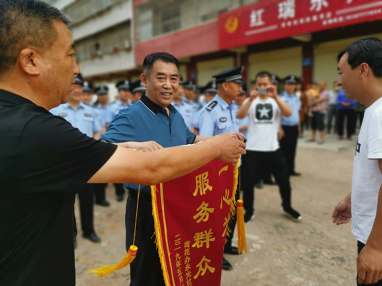 當(dāng)日上午,一臺挖掘機(jī)停在規(guī)劃好的空地上,警戒線內(nèi)是需要硬化的路面區(qū)域,困擾附近居民出行的問題終于要解決了。附近居民自發(fā)向公安民警和社區(qū)干部送上兩面寫著“創(chuàng)衛(wèi)先鋒 造福百姓”“一心為民 服務(wù)群眾”的錦旗,表達(dá)他們的感謝之情?!叭罕娛莿?chuàng)衛(wèi)的參與者也是受益者,等路面硬化后,希望大家和民警、社區(qū)干部一起將社區(qū)衛(wèi)生打掃好,保持好,為建成高標(biāo)準(zhǔn)衛(wèi)生小區(qū)共同努力?!睏罱苷f。