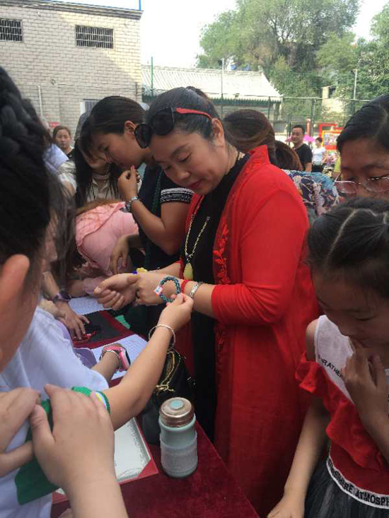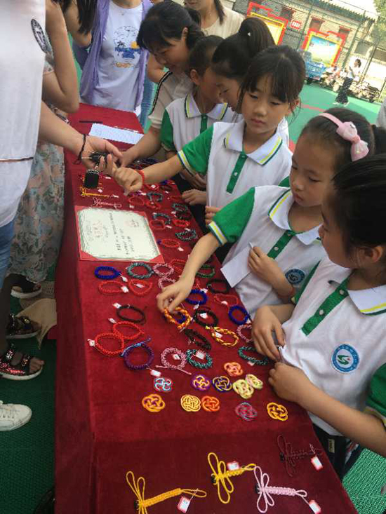 5月25日上午,沈丘縣中國結(jié)第七代傳承人李?;ㄗ哌M槐店鎮(zhèn)回民小學,和學?!爸袊Y(jié)”手工編織興趣班的20名學生舉行“愛心義賣,情暖校園”主題活動。不到半小時,100多件作品被搶購一空還預定了很多。據(jù)悉,這次義賣共得到1200余元,將全部捐給“槐店鎮(zhèn)中心學校教育基金”,用來資助該鎮(zhèn)經(jīng)濟困難師生、獎勵優(yōu)秀教師和學生、資助教育教研等重大活動項目。