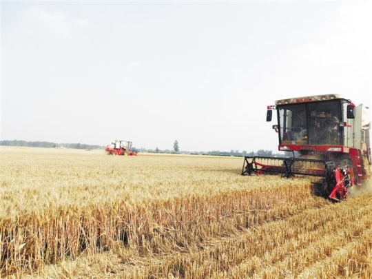 5月28日,沈丘縣周營(yíng)鎮(zhèn)歐營(yíng)行政村的麥田里,兩臺(tái)大型收割機(jī)正在緊張工作。眼下,該縣102萬(wàn)畝小麥已陸續(xù)成熟,當(dāng)?shù)剞r(nóng)民緊抓有利天氣條件搶收小麥。謝辛凌 攝