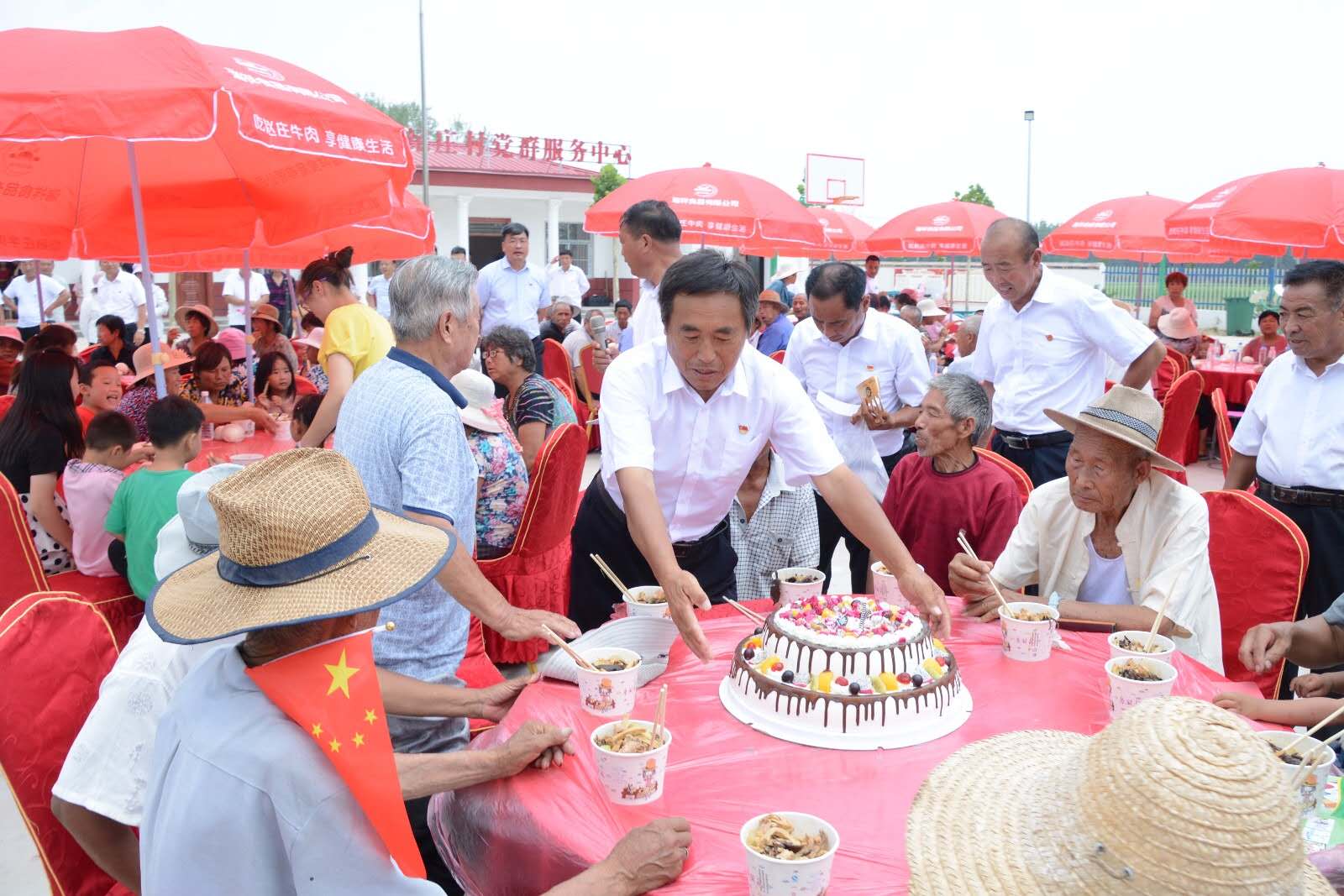 文藝演出結(jié)束后,參會黨員群眾歡聚一堂,共進午餐。紀莊村黨支部書記攜全體黨員干部共同為當月過生日的老黨員史海汕同志送上生日蛋糕,并一起聆聽老黨員的心路歷程,史海汕同志感慨地表述:“我在紀莊村生活了78年,這是我過的最好的一次生日,通過匯演我看到了鎮(zhèn)全體黨員、干部群眾們的愛國、愛黨、愛崗情懷,雖然我老了,可我的初心依舊,我愿為中國共產(chǎn)黨奮斗終身,為我們紅花集鎮(zhèn)鄉(xiāng)村振興添磚加瓦。”