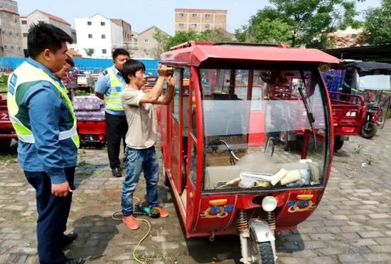 嚴(yán)管形成了高壓態(tài)勢(shì),厚愛更維護(hù)了鄲城縣文明執(zhí)法的良好形象。該縣規(guī)定,對(duì)家用電動(dòng)三輪車、電動(dòng)四輪車進(jìn)入縣城禁行區(qū)域的,文明執(zhí)法,不予處罰,以暫扣警示、宣傳勸導(dǎo)為主。對(duì)于從事非法營(yíng)運(yùn)的電動(dòng)兩輪車、電動(dòng)三輪車、電動(dòng)四輪車車主不予經(jīng)濟(jì)處罰,車棚自愿切割后放行。對(duì)于老弱病殘等特殊情況及時(shí)匯報(bào)領(lǐng)導(dǎo),酌情處理。