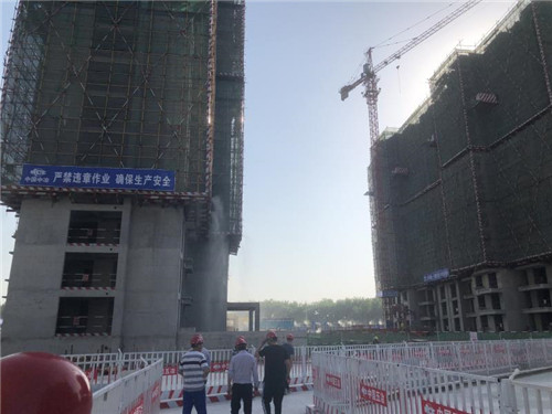 當(dāng)日下午,記者在金海嘉苑3標(biāo)段施工現(xiàn)場(chǎng)看到,高聳入云的塔吊有條不紊地作業(yè),施工車輛不時(shí)進(jìn)出,施工人員揮汗如雨緊張施工,一派忙碌的施工景象。工地環(huán)保措施也相當(dāng)?shù)轿?,樓層噴淋激起水霧彩虹,圍擋及通道噴淋霧狀灑水,車輛進(jìn)出必須清洗。在項(xiàng)目入口施工顯示牌上,噪音、揚(yáng)塵等指標(biāo)均嚴(yán)格控制在標(biāo)準(zhǔn)區(qū)間內(nèi)。