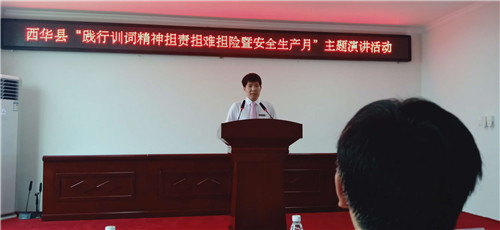 今年6月是全國第18個“安全生產(chǎn)月”,為牢固樹立安全發(fā)展理念,增強全民安全生產(chǎn)意識。6月28日下午,西華縣舉辦“踐行訓(xùn)詞精神擔(dān)責(zé)擔(dān)難擔(dān)險暨安全生產(chǎn)月”主題演講比賽,來自應(yīng)急管理系統(tǒng)的15名選手齊聚賽場,以一個個生動的故事和深入人心的道理,深刻闡述了“安全”的內(nèi)涵。