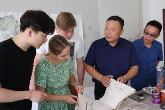 鹿邑本土畫家劉龍飛畫的花鳥栩栩如生引起俄羅斯青年畫家們的嘖嘖稱嘆。兩位青年畫家通過(guò)翻譯告訴記者,中國(guó)畫歷史悠久、博大精深,看到兩位老師的畫作形神兼?zhèn)?,氣韻生?dòng),真是不虛此行,感謝贈(zèng)送的佳作,他們一定珍藏。據(jù)悉,本次活動(dòng)他們將以國(guó)際藝術(shù)志愿者的身份、以西方人的視角描繪老子故里的美景,他們走進(jìn)明道宮、太清宮等景點(diǎn)實(shí)地寫生,并走美術(shù)學(xué)校為孩子們輔導(dǎo)繪畫并帶來(lái)世界名校的繪畫理念。