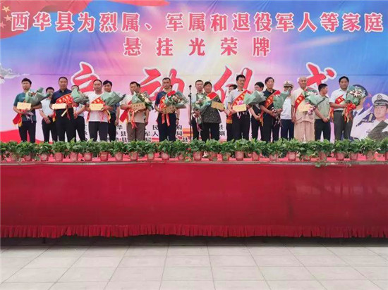 “八一”建軍節(jié)前夕,西華縣啟動了軍人軍烈屬懸掛光榮牌儀式、2019年義務兵家庭優(yōu)待金發(fā)放儀式。營造“一人當兵、全家光榮”的良好氛圍,共同鞏固人民軍隊的“鋼鐵長城”。