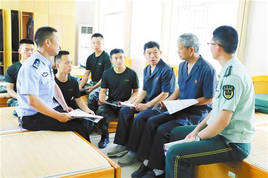 7月26日上午,太康縣人民法院的法官們來到縣武警中隊,為武警官兵提供法律咨詢和服務(wù)活動,解決他們在日常工作、生活中遇到的法律問題,并向他們贈送《軍人維權(quán)指南》《法律小常識》等有關(guān)法律書籍及慰問品,受到了熱烈歡迎。圖為該院法官向武警官兵講解法律常識。
