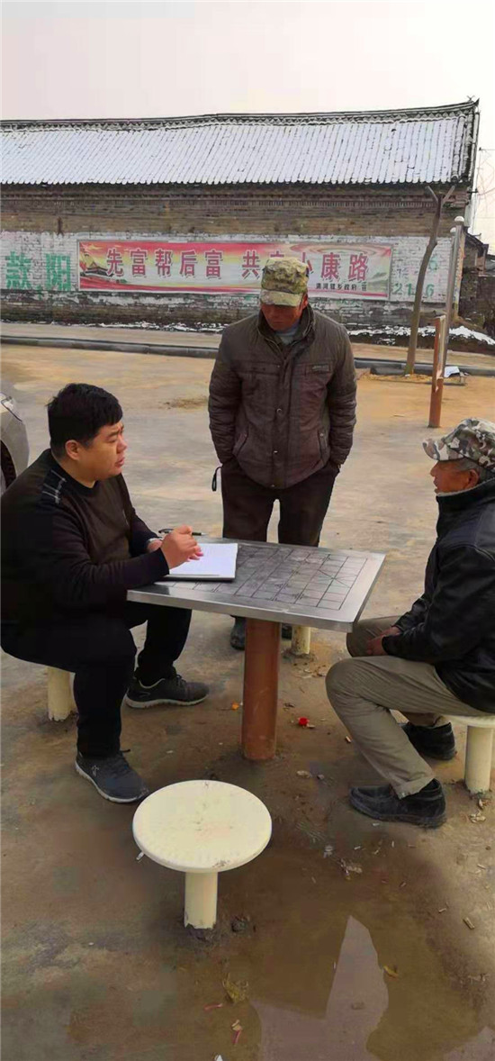2017年12月中旬,西華縣法院黨組選任他到清河驛鄉(xiāng)大王寨村任扶貧工作隊(duì)長(zhǎng)。他接到通知后只說(shuō)了一句話:“只要組織需要,我無(wú)條件服從組織決定?!钡诙欤蚋敝魅侮惗ソ淮斯ぷ骱?,就匆匆忙忙到村里報(bào)到。